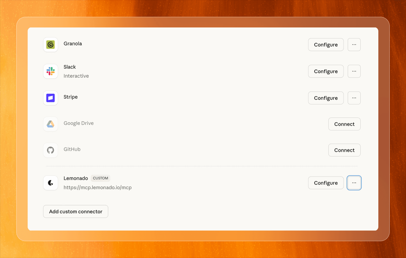 Adding Lemonado as an MCP connector