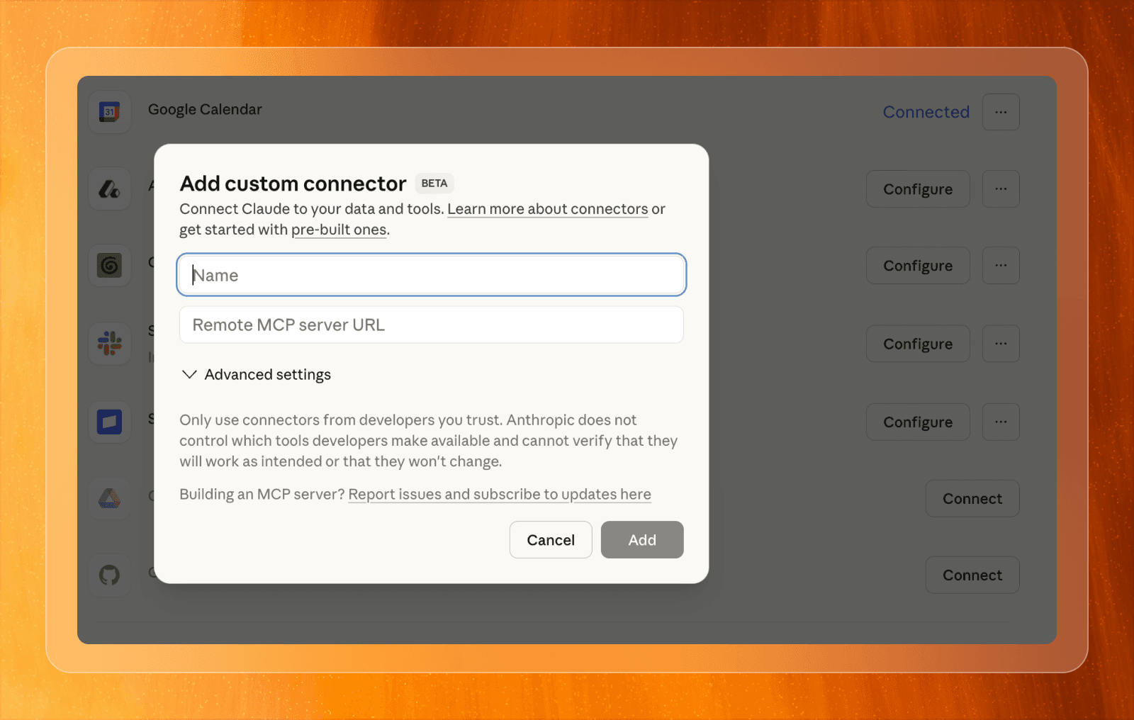 Click Add custom connector